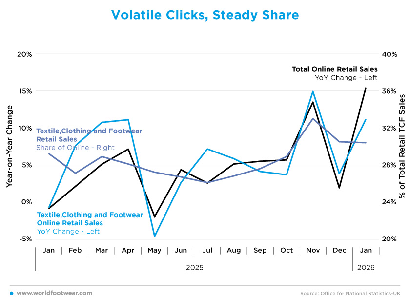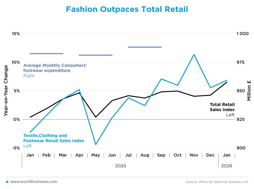 Textile, clothing, and footwear (TCF) sales showed a strong recovery in the UK throughout 2025, despite some volatility during the year.