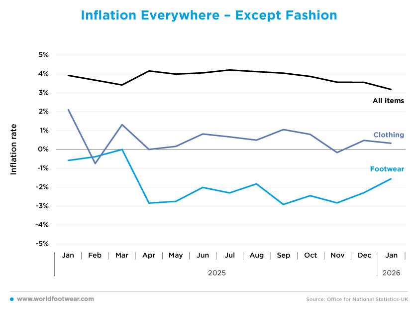 In 2025, price dynamics in the UK retail sector showed a clear divergence between overall inflation and fashion-related categories. Although headline inflation remained high, fluctuating between 3.4% and 4.2% for much of the year, it gradually eased towards the end of the period, reaching 3.2% in January 2026.At the same time, intense competition within the retail sector, particularly in non-food categories such as fashion, is reflected in price dynamics. Despite broader inflationary pressures, retailers have continued to rely on promotions and competitive pricing strategies, helping to keep price increases subdued (brc.org.uk).