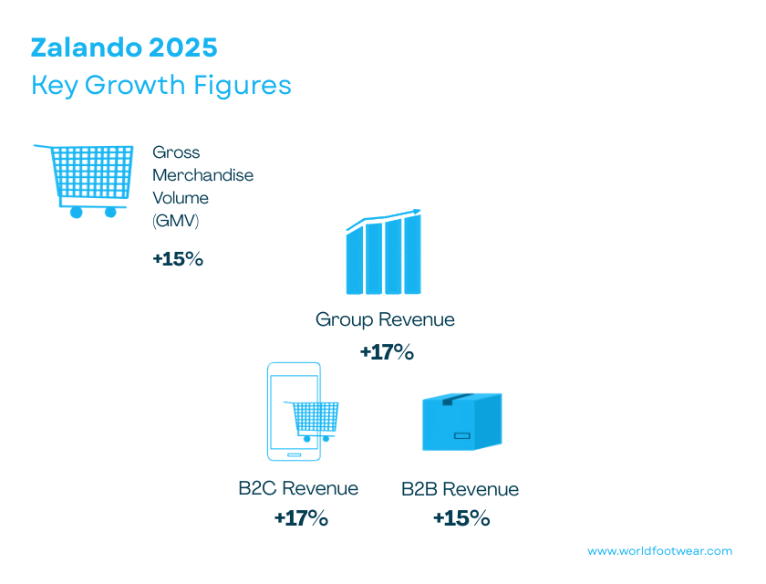 “We accelerated our strategy and rolled out major innovations across B2C and B2B to deliver a strong performance in 2025”, said Robert Gentz, Co-CEO of Zalando. In fact, the online fashion retailer reported double-digit increases in both gross merchandise value (GMV) and revenue.